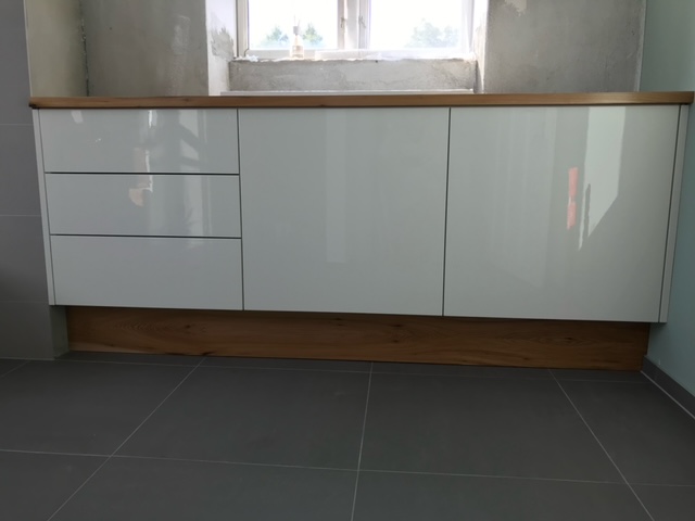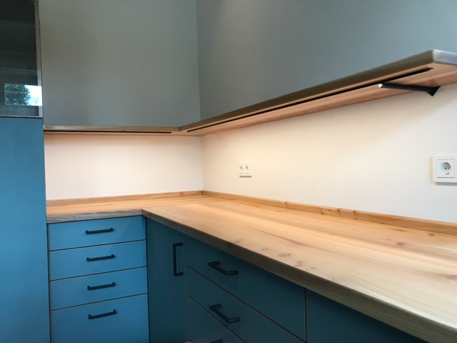 Holz, Stein oder Farbe sollen die Arbeitsflächen / Herdstelle / Waschbecken – an Ihre Größe angepasst – unterschiedlich hoch sein, oder gleiche Höhe?